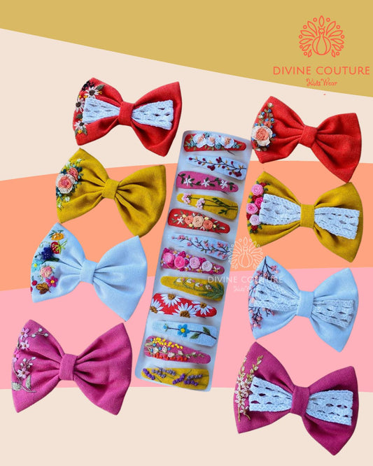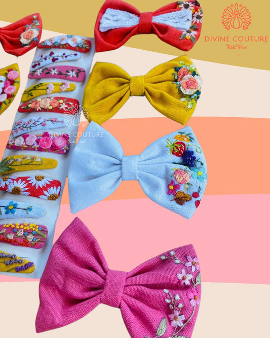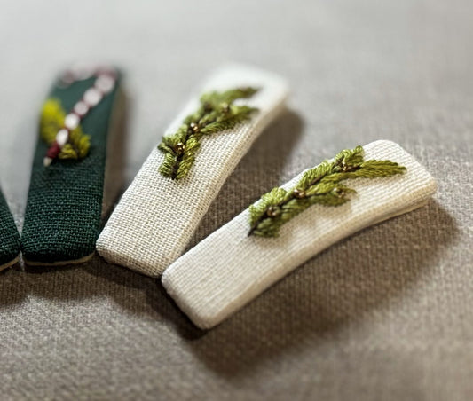 Handmade Embroidered Hair Clips – Floral Elegance for Girls (Square)